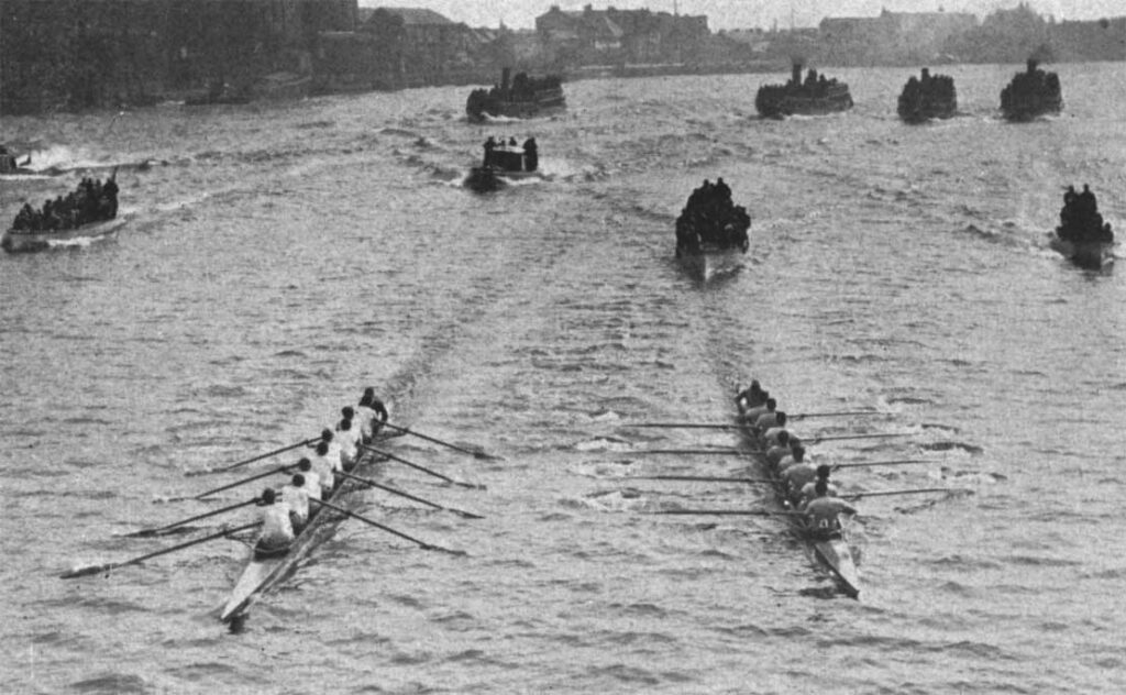Oxford and Cambridge Boat Race from Hammersmith Bridge, 1937