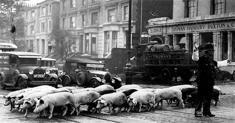 The blossoming motor age completely transformed everyday life.  At the start of 1920, there were around 300,000 motorized vehicles on British roads, however this number virtually doubled by the end of the decade.  Journeys were perilous, though.  Slower traffic, like horse-drawn carts, carriages, trams and bicycles vied for space with these new-fangled upstarts.  It was quite evident that no-one followed whatever ‘rules of the road’ applied at the time.  Pedestrians, who still held the ‘right to saunter’ merely added to the melee, and by 1929 mishaps between people and cars had resulted in 6,000 deaths and more than 220,000 injuries. The average Bobby was ill-equipped for handling the congestion, volume and variety of traffic on streets that were never intended for such purpose.  Desperate city councils experimented with ‘automated policemen’ (traffic lights) and a somewhat generalized Highway Code which restricted motorists to the roads and pedestrians to the pavements, with designated crossing places. Video of London in 1924 – remastered by NASS on Youtube with colour and sound. Quite amazing.