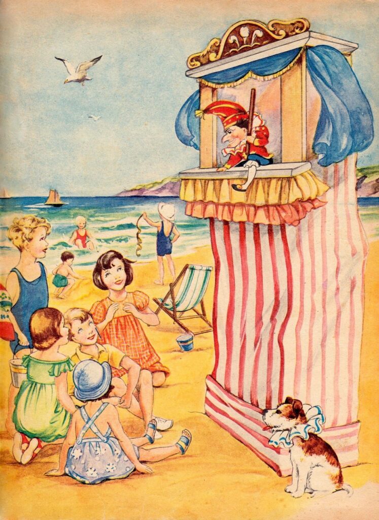 Rambling and cycling became popular pastimes, as did rail travel.  Families weighed down with buckets, spades and picnic hampers would make day trips to beaches and towns along the coast — places like Blackpool, Whitby, Margate, Clacton, Brighton and Bognor.  Enterprising locals soon saw opportunities for deckchair rentals and beach hut use; winkle, whelk and ice cream sellers discovered new audiences, and entertainment for children became popular as Punch and Judy shows and Donkey Rides sprang up along the beaches.  The amalgamation of two war-time airfields at Croydon became London’s first international airport, although initial air travel was limited to a few European countries.  Transatlantic journeys, like those between Southampton and New York, still required five days onboard a steamship.