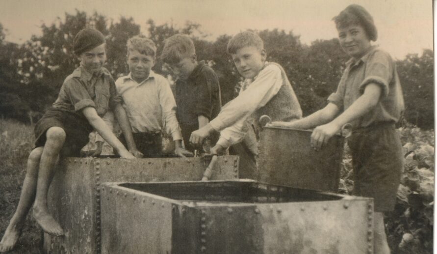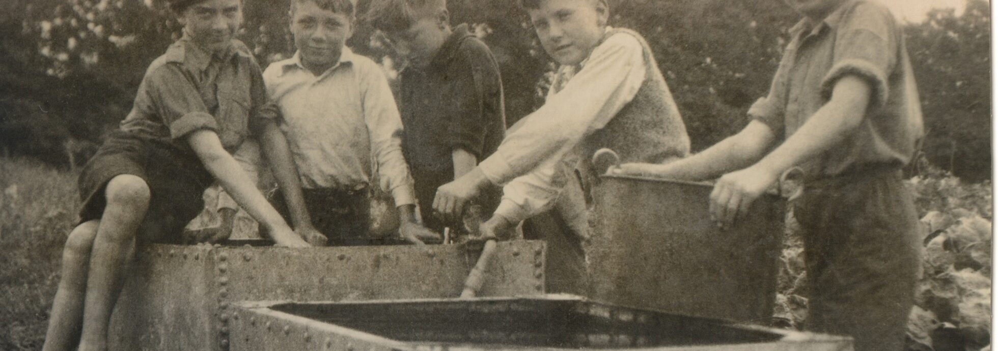 As with all young boys RG was outgrowing his clothes at an alarming rate so Kate in a moment of desperation asked her mother-in-law Sarah (a skilled tailoress) to convert an old pair of his father’s checkered plus fours into some serviceable trousers.  R.G. loathed them on sight, vowing never to wear them.  One Saturday, however, with nothing else to wear he donned the dreaded garment and went off to play with his mates near Hammersmith bridge.  After swimming, they got dressed and sat on one of the huge barges moored there, having previously used it as a diving off point.  It was a scorching day in June and the deck tar had turned to the consistency of glue.  RG was stuck fast. Not deterred, his mates assisted by giving him a mighty heave, successfully leaving the seat of his trousers behind and ensuring he never had to wear them again.