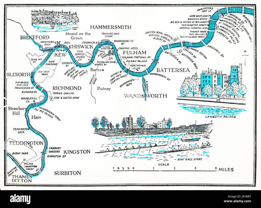 Upstream from the port and docklands, where the river was less congested, rowing sculls skimmed across the surface like determined water beetles, blades dipping and glinting, coxes slouched and bellowing. Regattas abounded throughout the summer, and for some, culmination was the Boat Race between Oxford and Cambridge university eights – held annually since 1859 (excepting both world wars and Covid Pandemic in 2020).   The S-shaped course of 4.2 miles (6.8kms) covers a distance between Putney and Chiswick Bridges with Hammersmith Bridge at just under the halfway point.  It is rowed upstream with an incoming tide to give the fastest possible current, and a coin toss determines starting side.  Depending on wind and weather, the Middlesex side gives rowers an advantage in the first and last curves, while the longer middle bend benefits the Surrey side.  Then and now, huge crowds of spectators line the banks and bridges, some running or biking along the footpaths to keep pace – everyone sporting light blue for Cambridge or dark blue for Oxford. To date (2024) Cambridge has had 87 victories to Oxford’s 81 with one hotly contested dead heat and three sinkings apiece.*