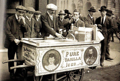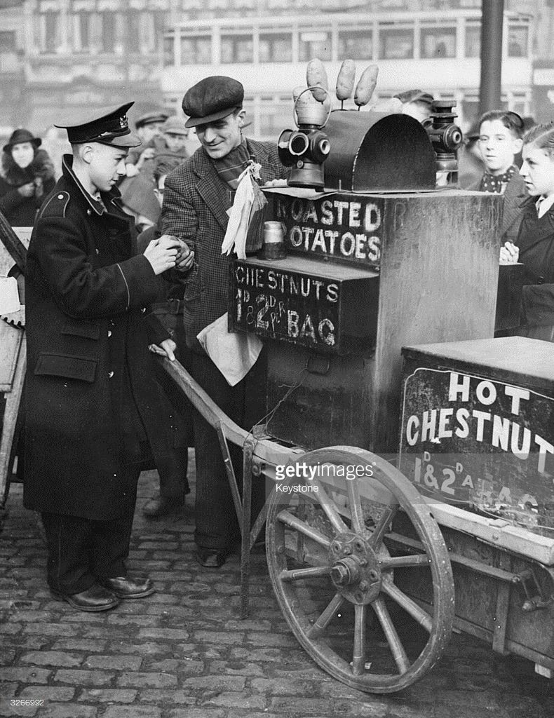 Entertainment abounded in the form of sideshows, jugglers, acrobats, and novelty acts.  Food stalls were plentiful – roasted chestnuts on coal braziers – popular on cold winter months, fresh cockles, mussels and whelks, buckets of jellied eels, bright red saveloys (spicy sausage), pie & mash drizzled with ‘green liquor’ (parsley sauce).